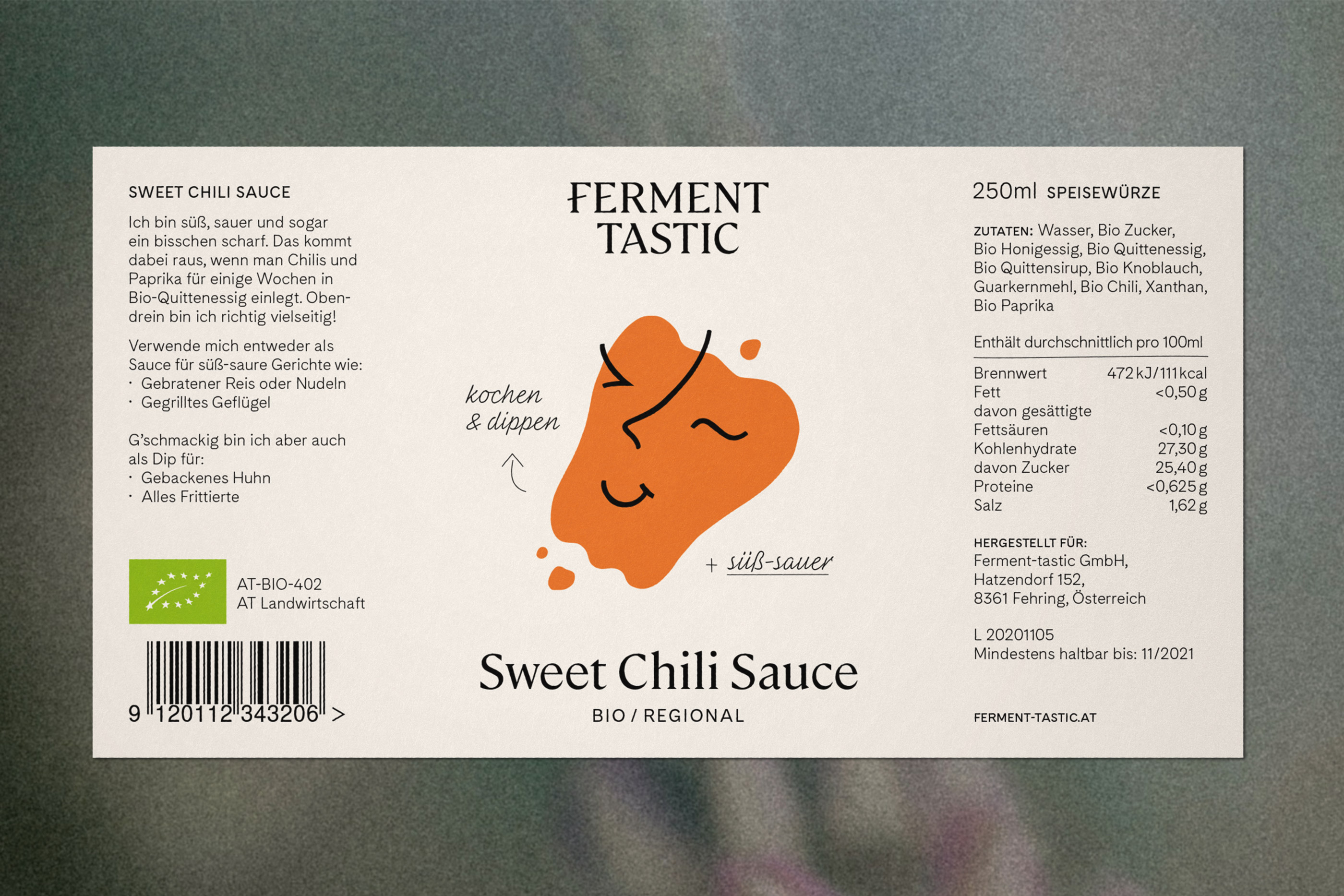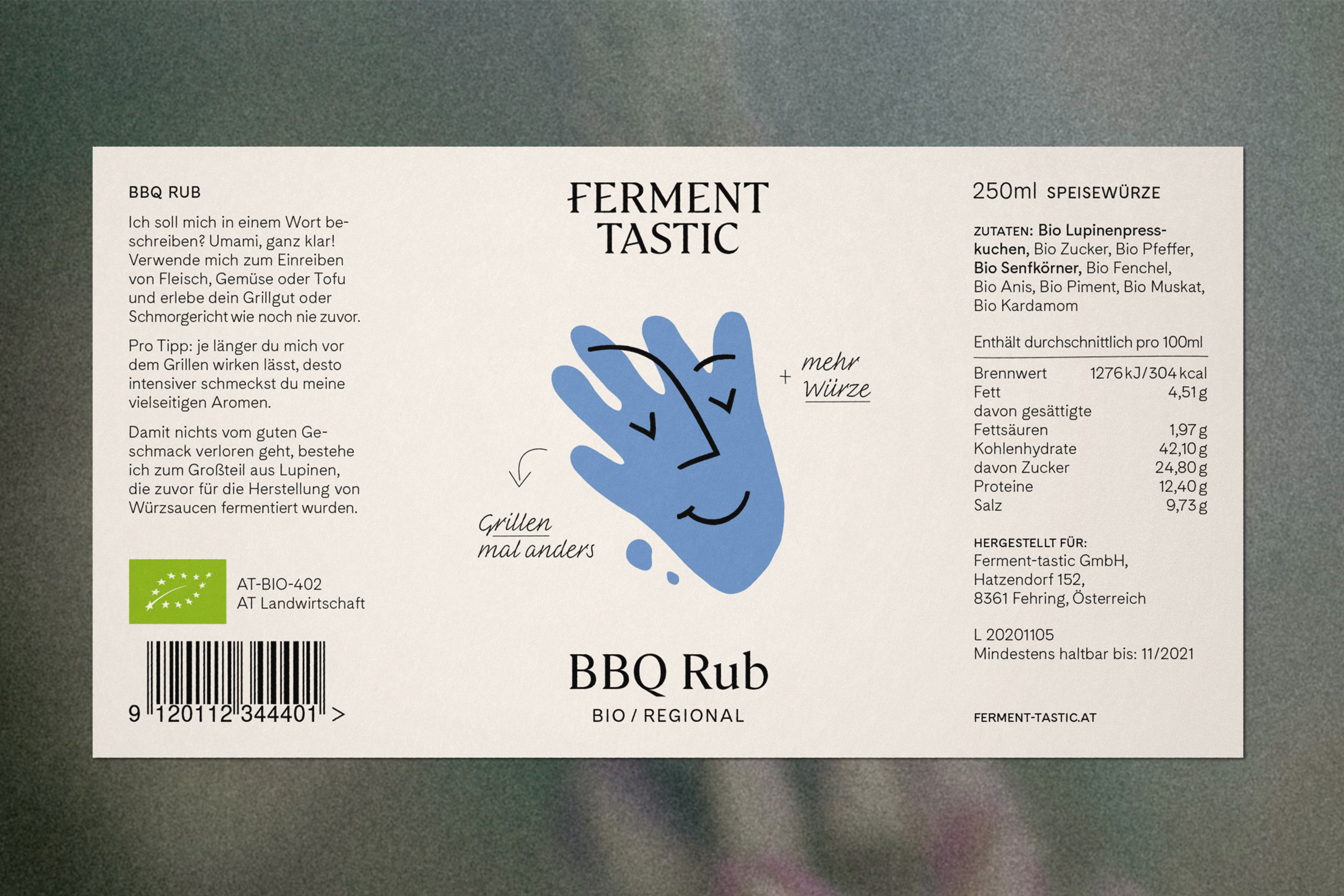 The creators of Ferment-Tastic had the vision of developing a regional and organic condiment. With their innovative range of fermented sauces and seasonings, centred around Austrian Lupin Sauce, they have succeeded in doing just that. The products are designed to bring new flavours to familiar cooking processes. We were asked to develop a brand strategy for Ferment-Tastic and design the brand's visual identity, including the packaging. A key aspect of this was to communicate knowledge about how to use the products, some of which are still unknown. The characters on the labels were developed specifically for this purpose. They help to convey the content in an accessible way, while adding the desired touch of humour and creativity.